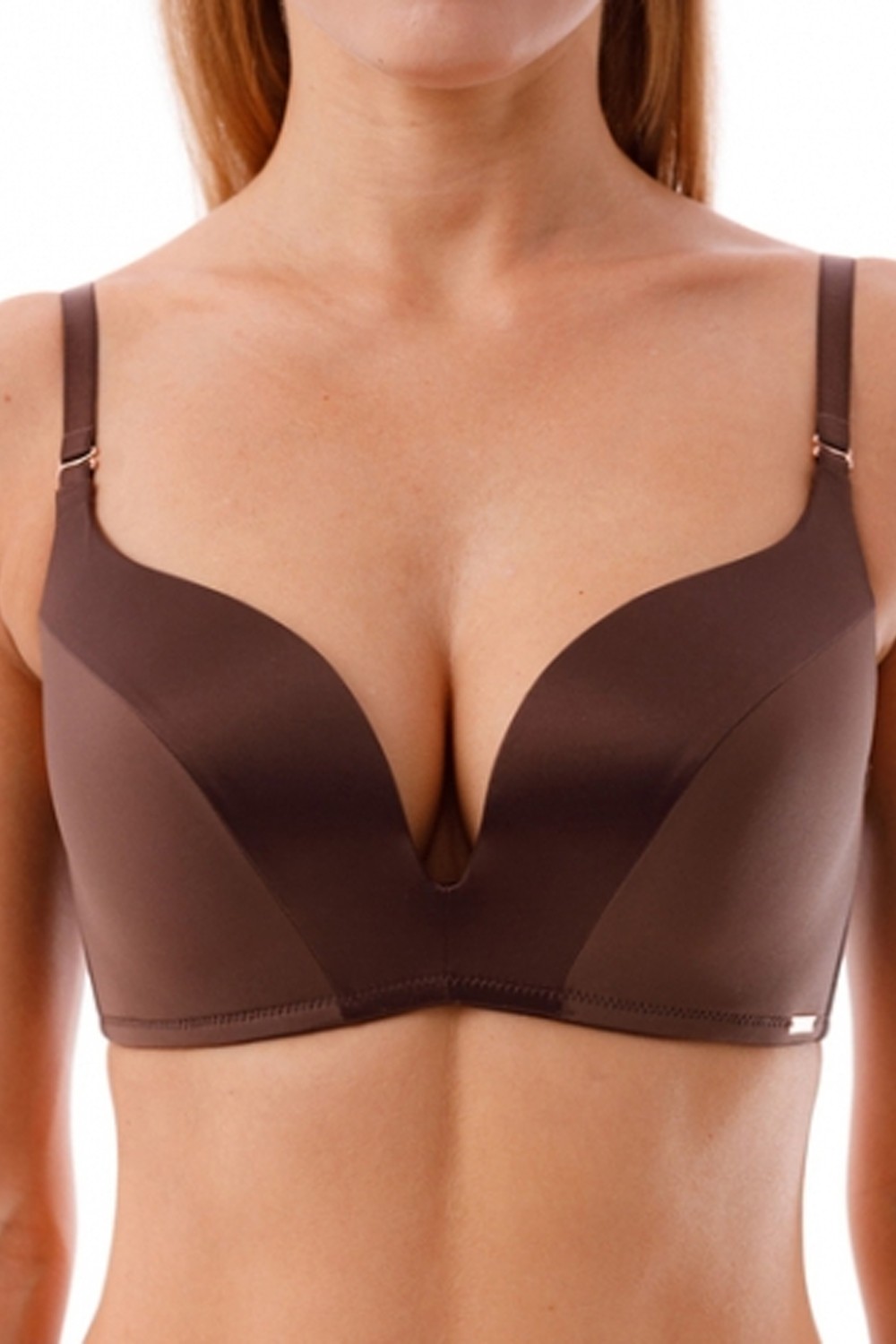 Бюстгальтер «пуш-ап» на поролоне бескостный, выполнен из шелковистой микрофибры. Бретели съемные с регулировкой. Украшение: медальон COQUETTE REVUE.